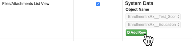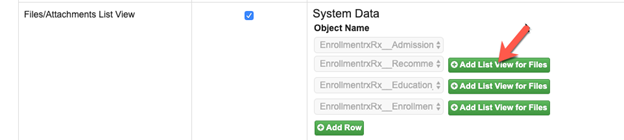 If you have upgraded to ERx Core Summer 19, and you previously had enabled Attachments, then you will see a button labeled “Add List View for Files” beside each previously configured object like this: