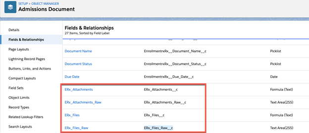 - ERx_Attachments_Raw (API name: ERx_Attachments_Raw__c) Text Area(255)