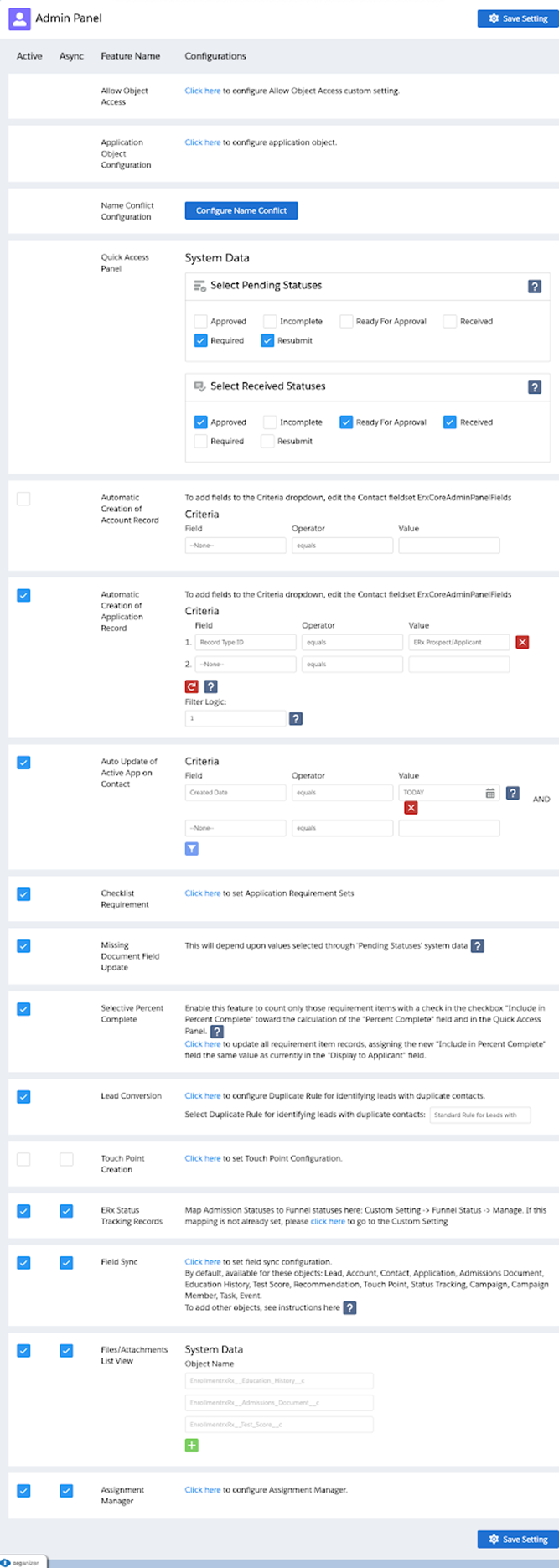 | Async | Fire the feature’s record updates in a transaction of their own, separate from the transaction that triggers them, to avoid exceeding Salesforce’s per-transaction governor limits (e.g., CPU timeout, Too many SOQL queries, etc.). |