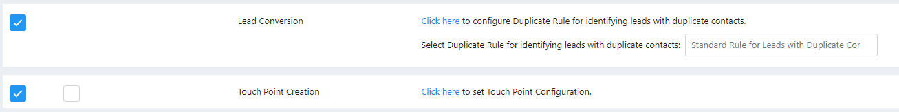 Enable Lead Conversion and Touch Point Creation and Specify the Duplicate Rule