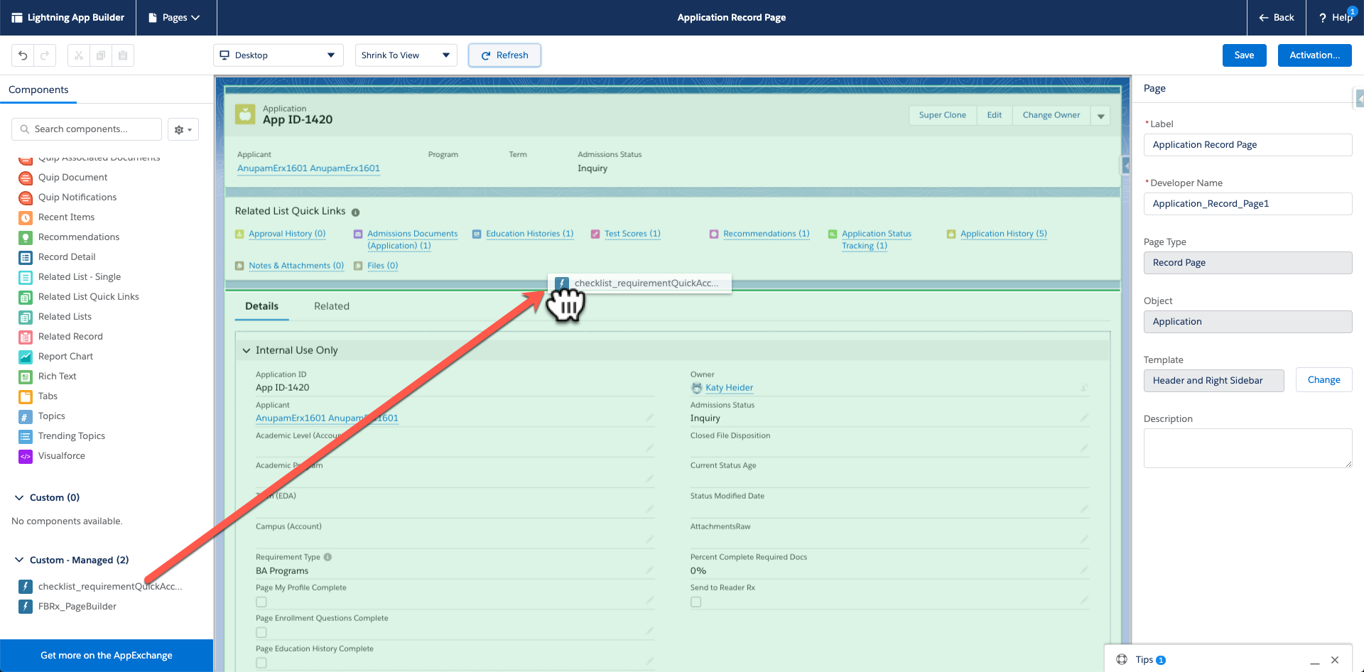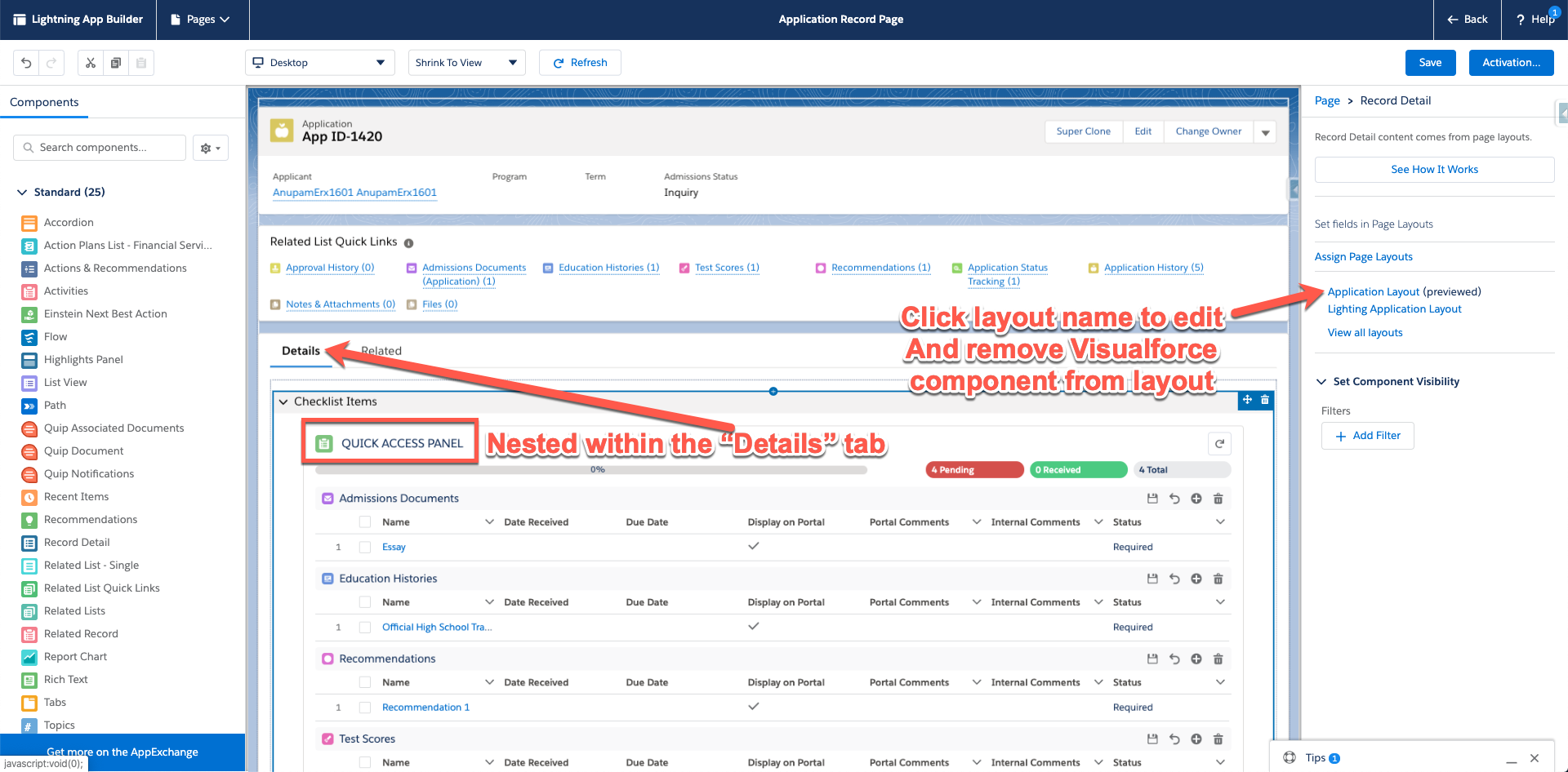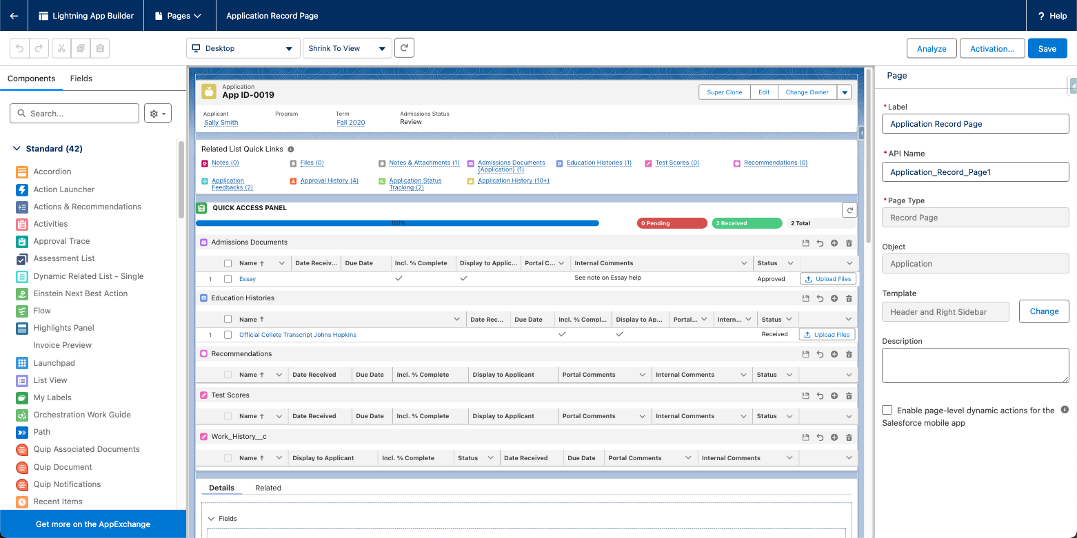 - Navigate to any Application’s detail page in Lightning.