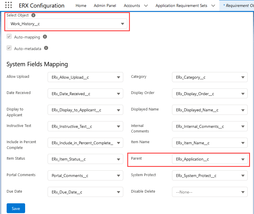 - Go to the Requirement Object Configuration panel (above) and configure the object you want to use as a RIO.
