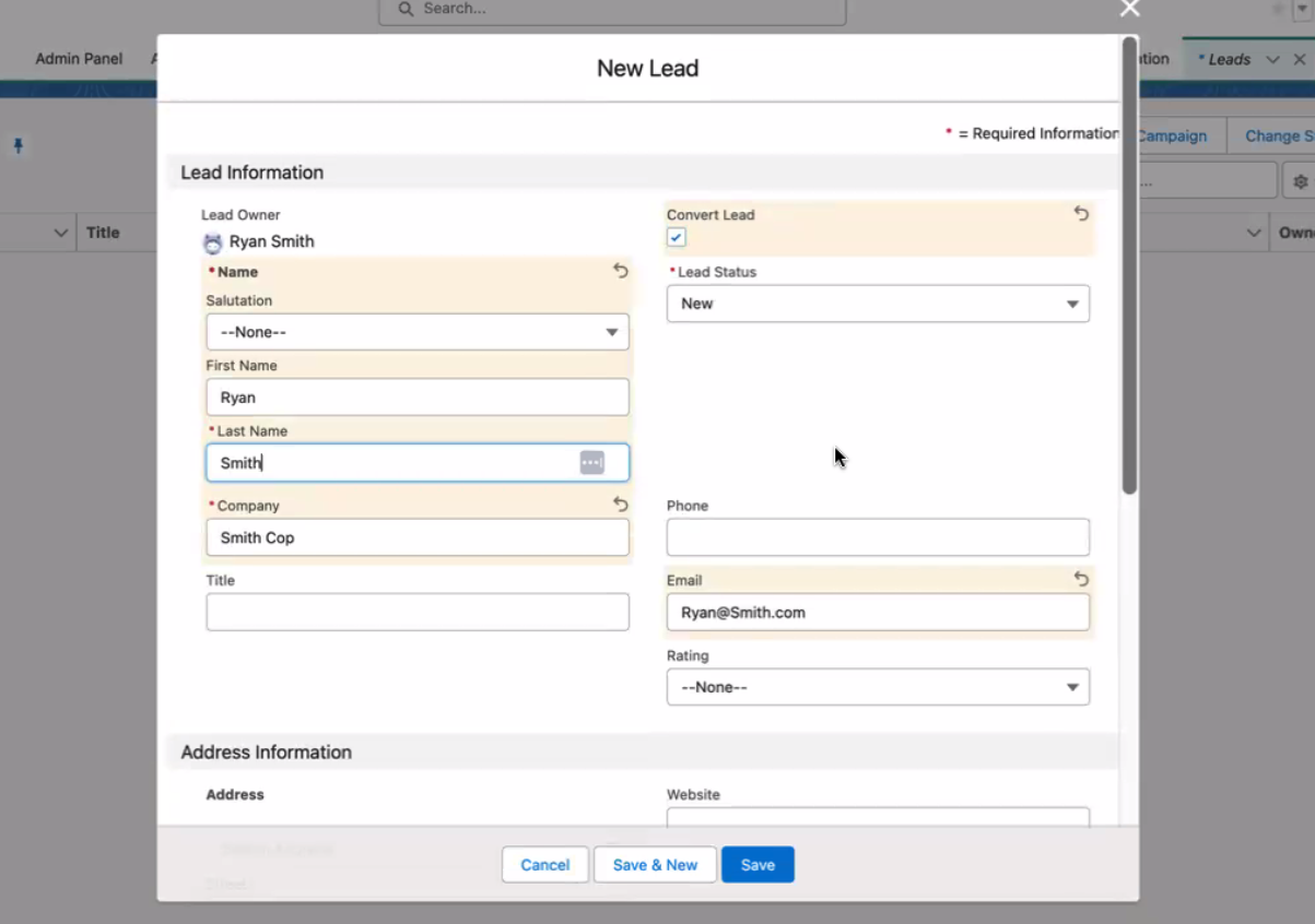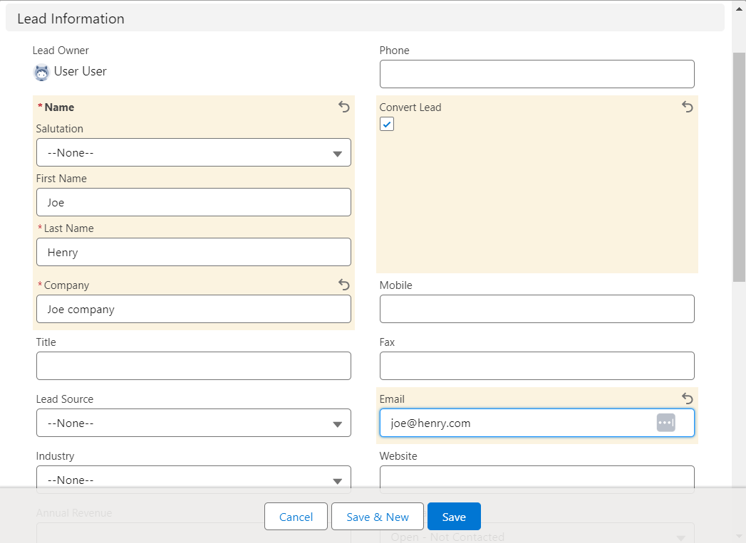 - Convert Lead: When converting a Lead, the Company Information field will be updated as blank when the "convert lead checkbox" is checked. This will convert the Lead to a Person Account instead of an Account and Contact.