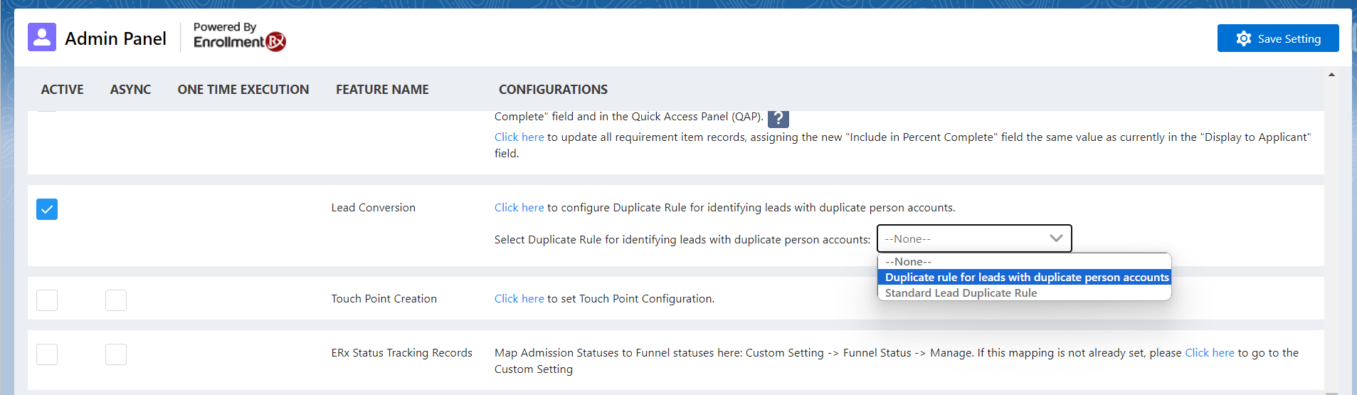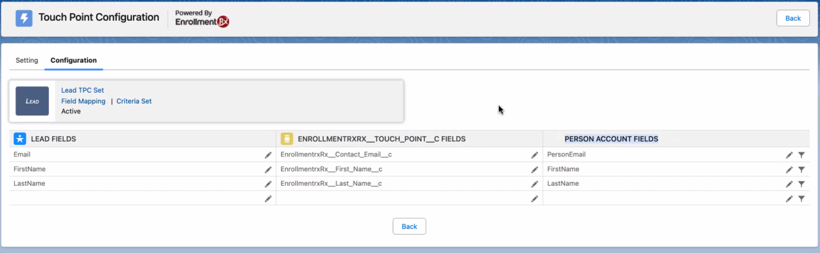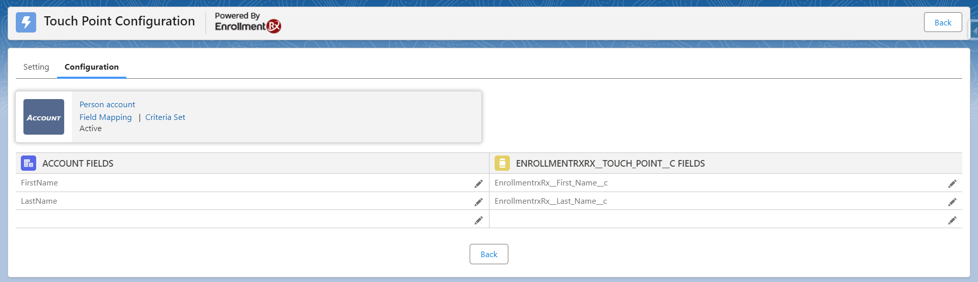 - When Person Account is enabled, all configurations for Contact will be hidden from the Touch Point configuration page, Assignment Rule page, Settings page, and Related Object list.