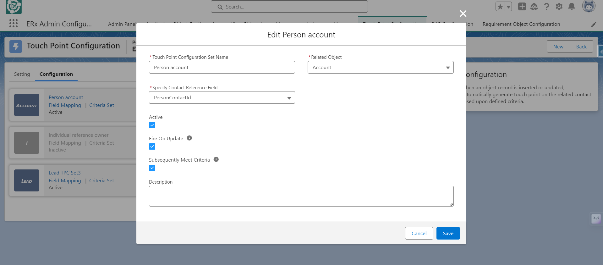 Following are the changes for Touch Point creation with the Person Account Model enabled: