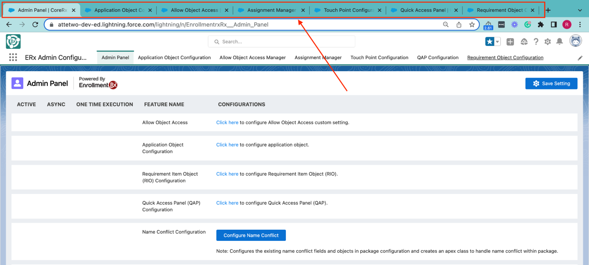 - In Touch Point Configuration and Assignment Manager, the active tabs are highlighted