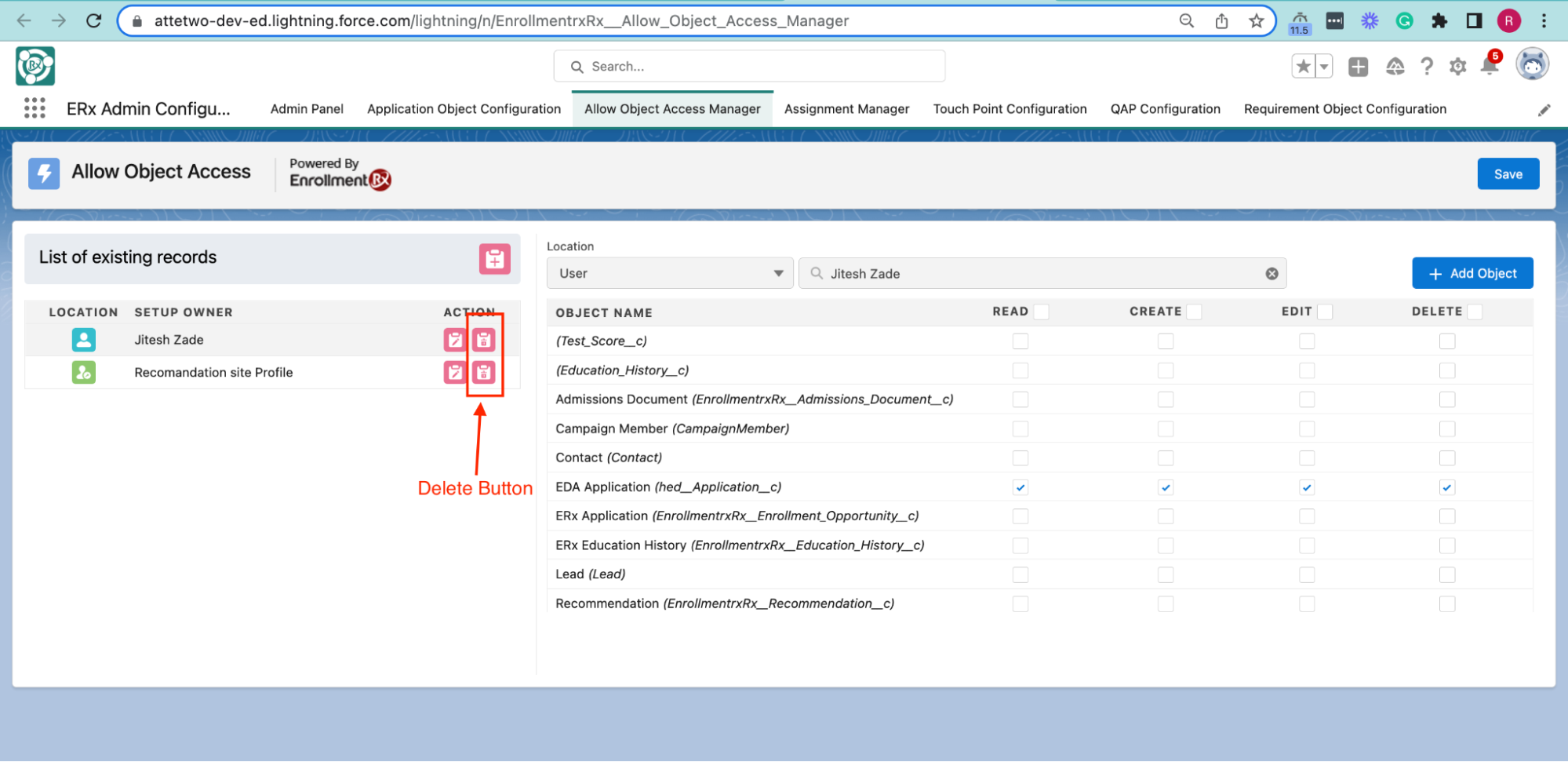 - We've introduced a delete button to the Allow Object Access screen, which allows you