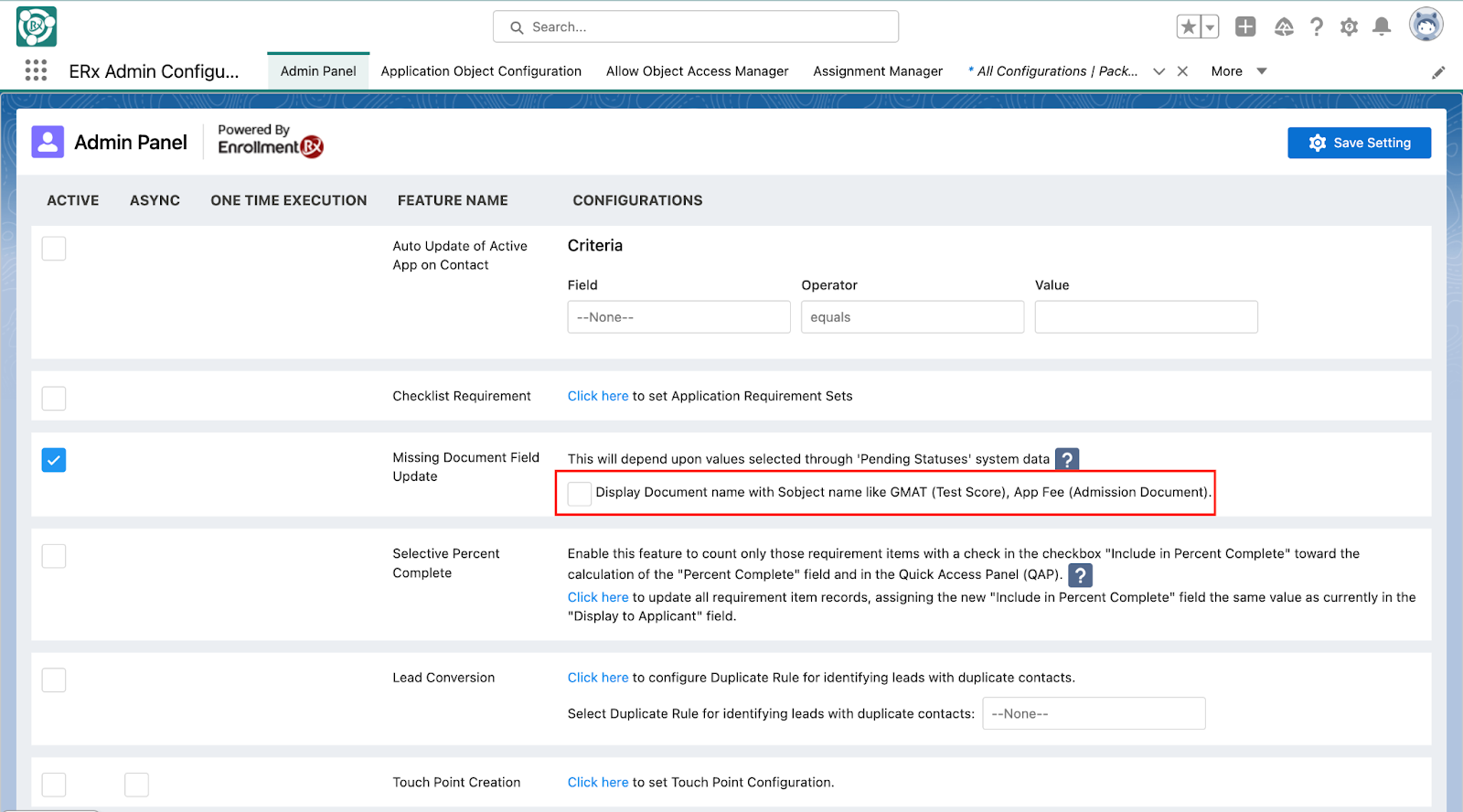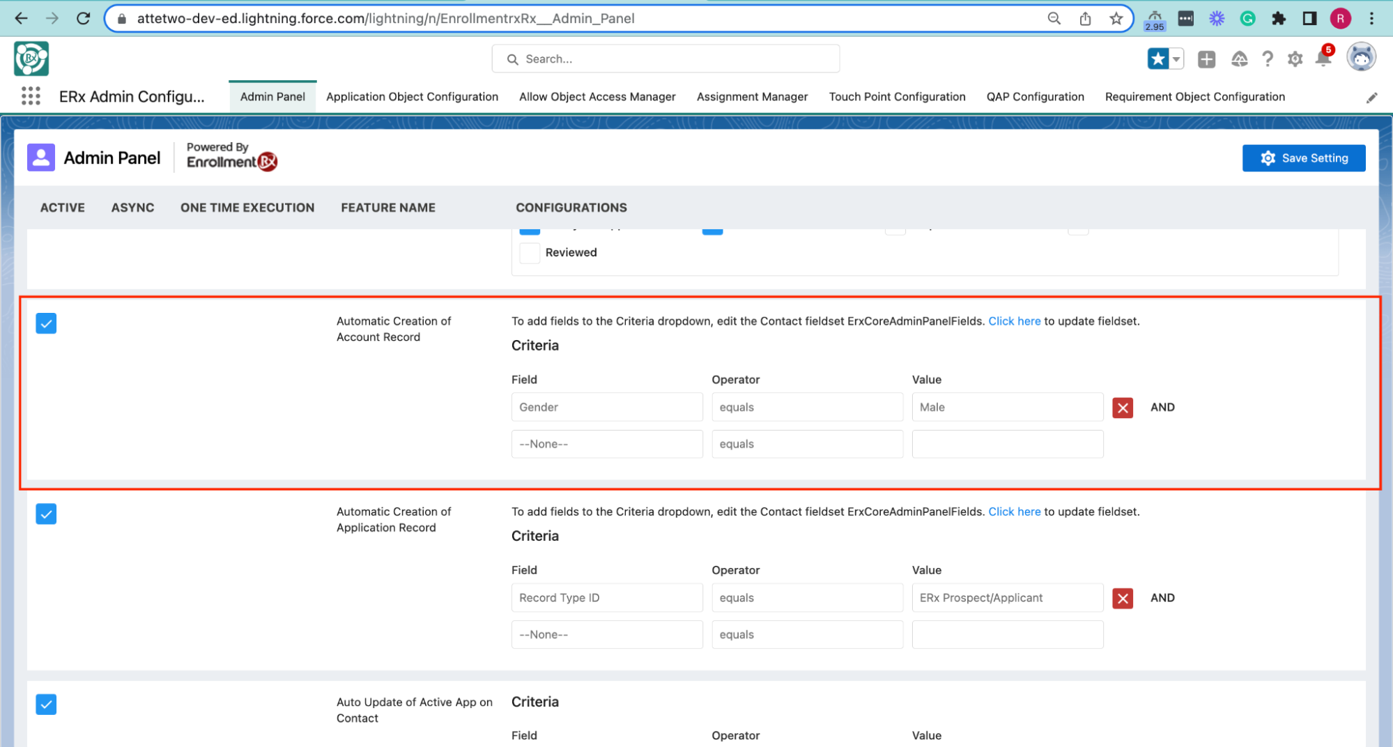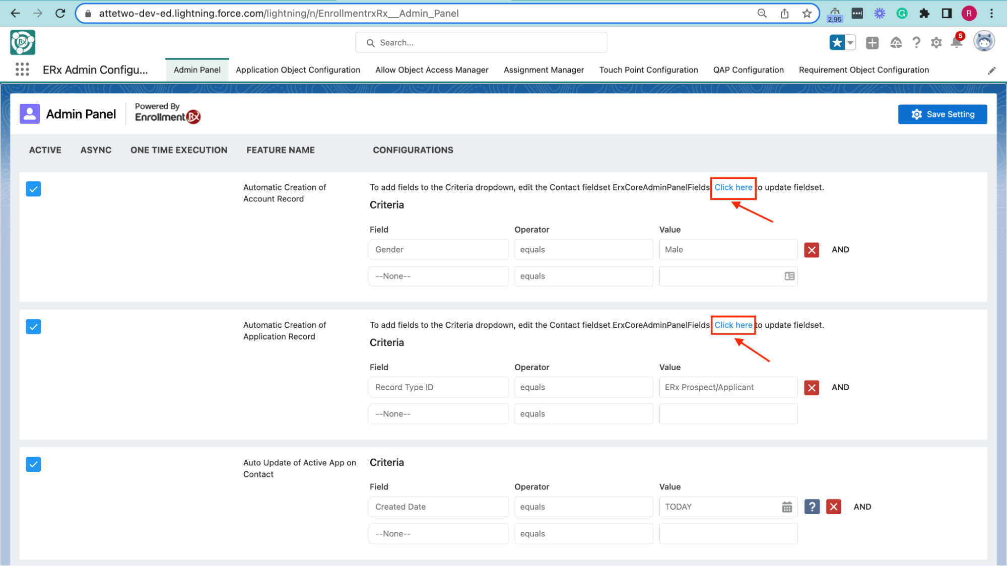 settings. A link from the Admin Panel redirects to this page for both Lightning