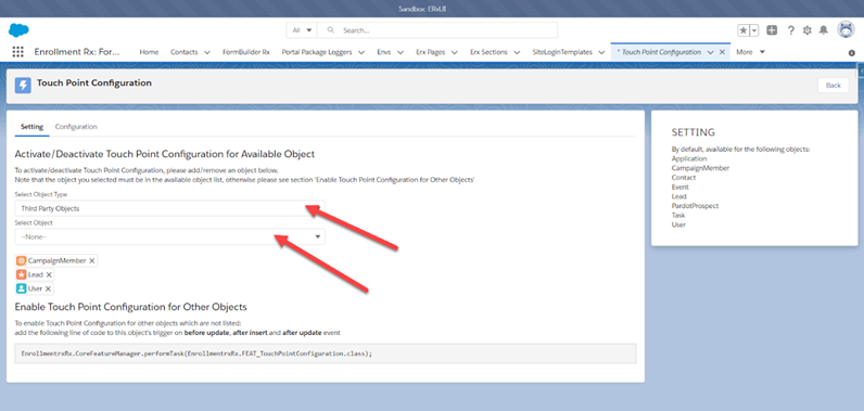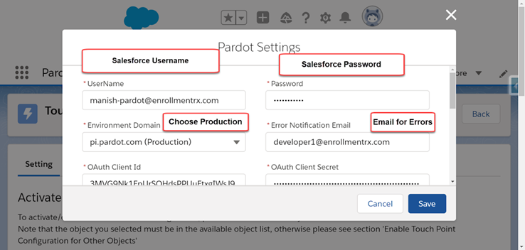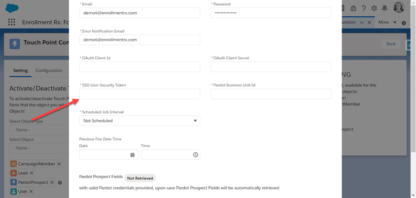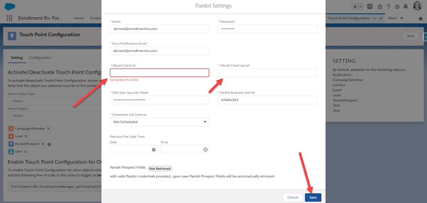 2. After the install is complete, go to the App Launcher > Touch Point Configuration. If you see the PardotProspect setting click the gear icon to follow/update the next steps: