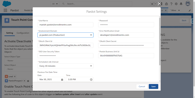 5. Find and enter Pardot Business Unit Id to the Pardot Prospect Setting Page
