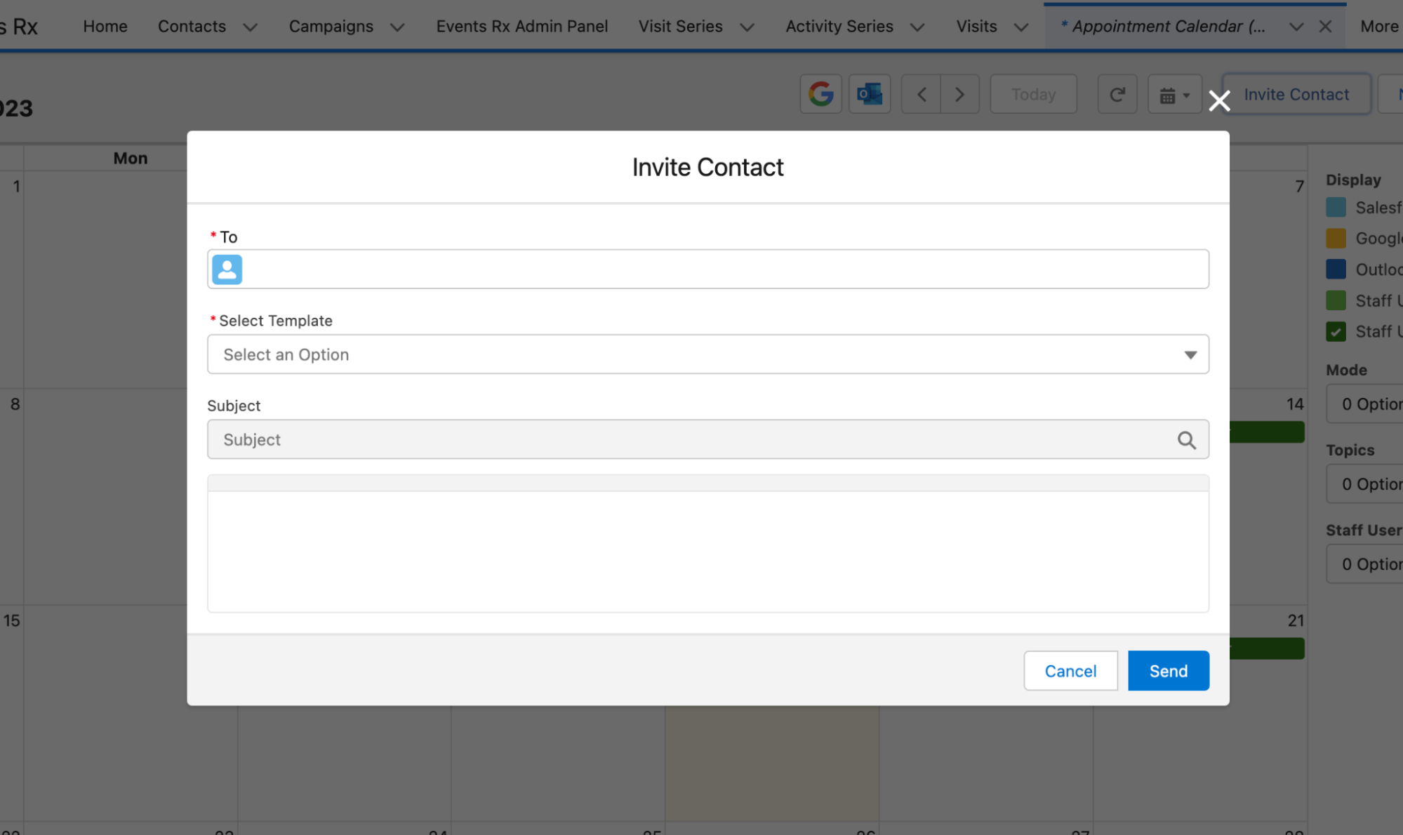 Your Staff Users can invite contacts directly from the Appointment Calendar to set up