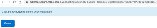 - The {{Cancel}} link will take the user to a page where they can click a button to cancel their registration, like this: