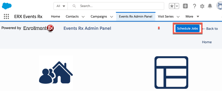 - Now, the “Schedule Jobs” button will appear on the Events Rx Admin Panel