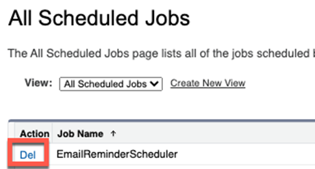 - Delete the job called “EmailReminderScheduler”: