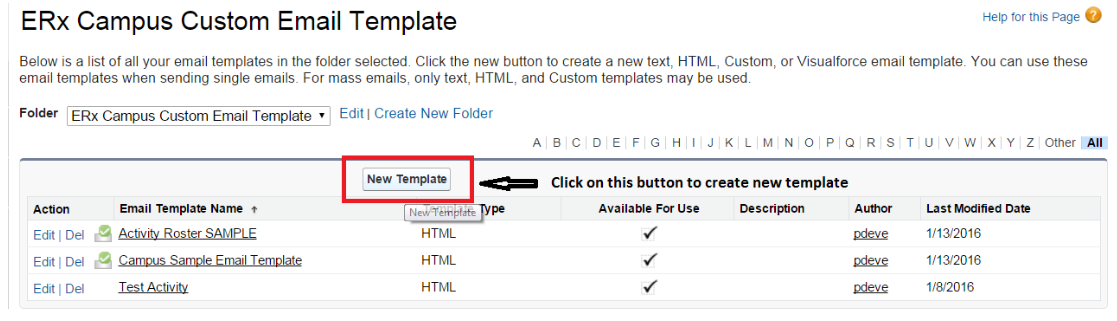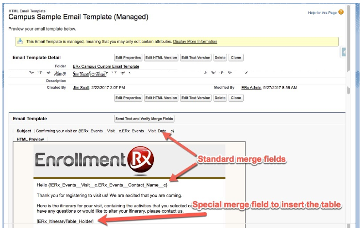 Email templates for mailing Itineraries from the Visit page or Activity Rosters from the Activity Series page must be stored in the Folder called “ERx Campus Custom Email Template”. These become available in the Table Configuration setup.