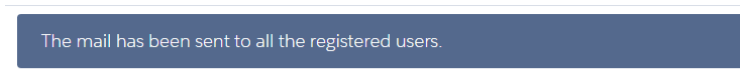 Click on the "Send Email to All" button. An email will be sent to the registered user's email address. The successful mail sent message will get displayed.