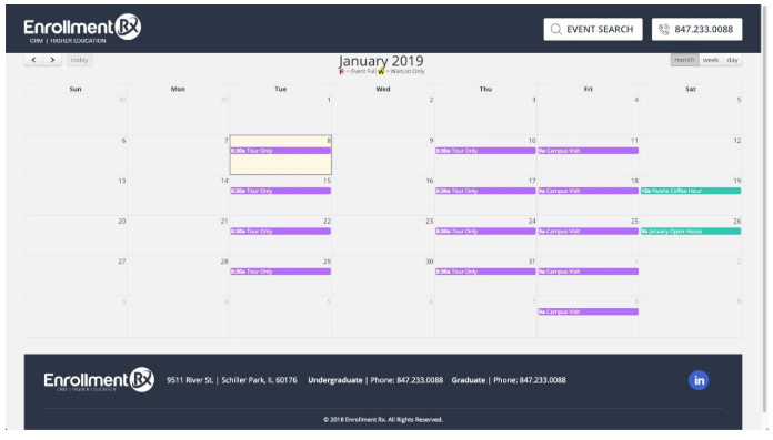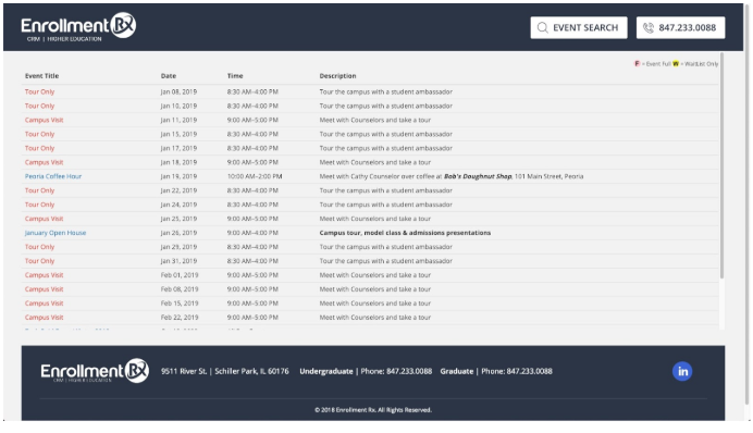 If “Campus Listing” is checked, then the Event Listing will look like this: