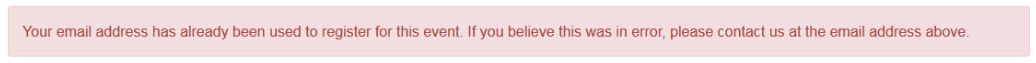- Conversely, if their CampaignMember Status is already the Registered Status, an error message will be displayed saying they are already registered for the event, like this: