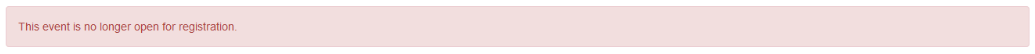 - If the event is closed, based on the combination of Active, capacity, RSVP Date, and End Date, then a message is displayed to the user when attempting to access the Registration page: