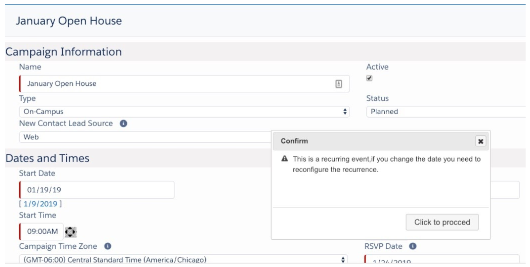 For a recurring campaign, a Parent campaign’s Start Date and End Date can be edited