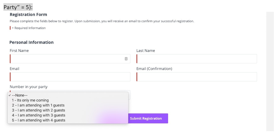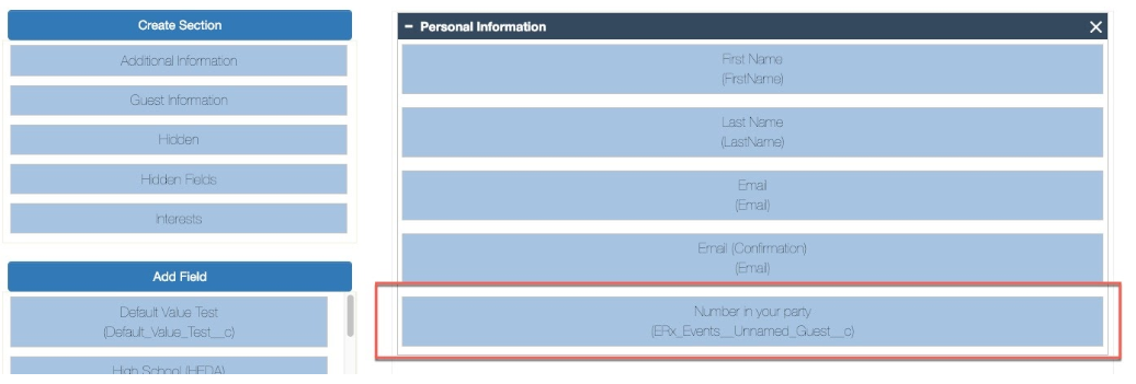 “ERx_Events__Unnamed_Guest__c”). We suggest you label this “Number in your party”