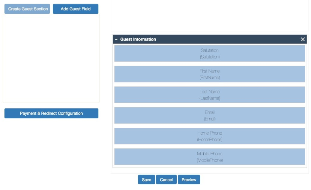 You can use the “Add Guest Field” button to create fields for inclusion in the Guest Information section. And you can edit all the fields as described above.