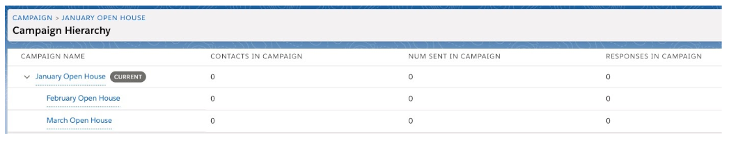 Campaign Hierarchy list (here we have renamed the child campaigns to be