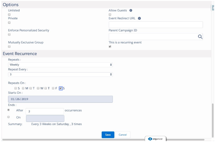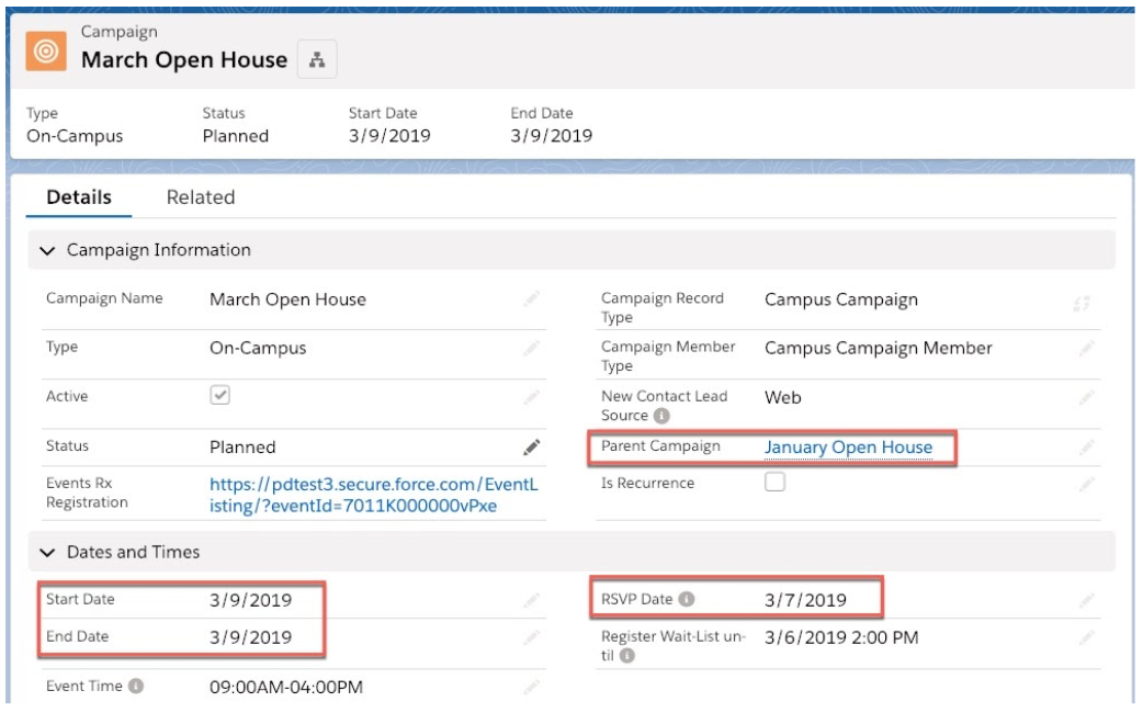 - In a Recurring Campaign, the first campaign record you create will always be the Parent Campaign and this will always be the first event in the series.