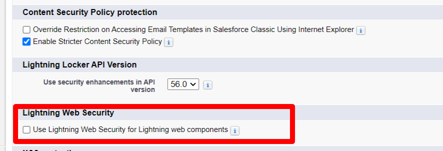Use Ligthning Web Security for Lightning web components(so that its value is set to false) and click Save