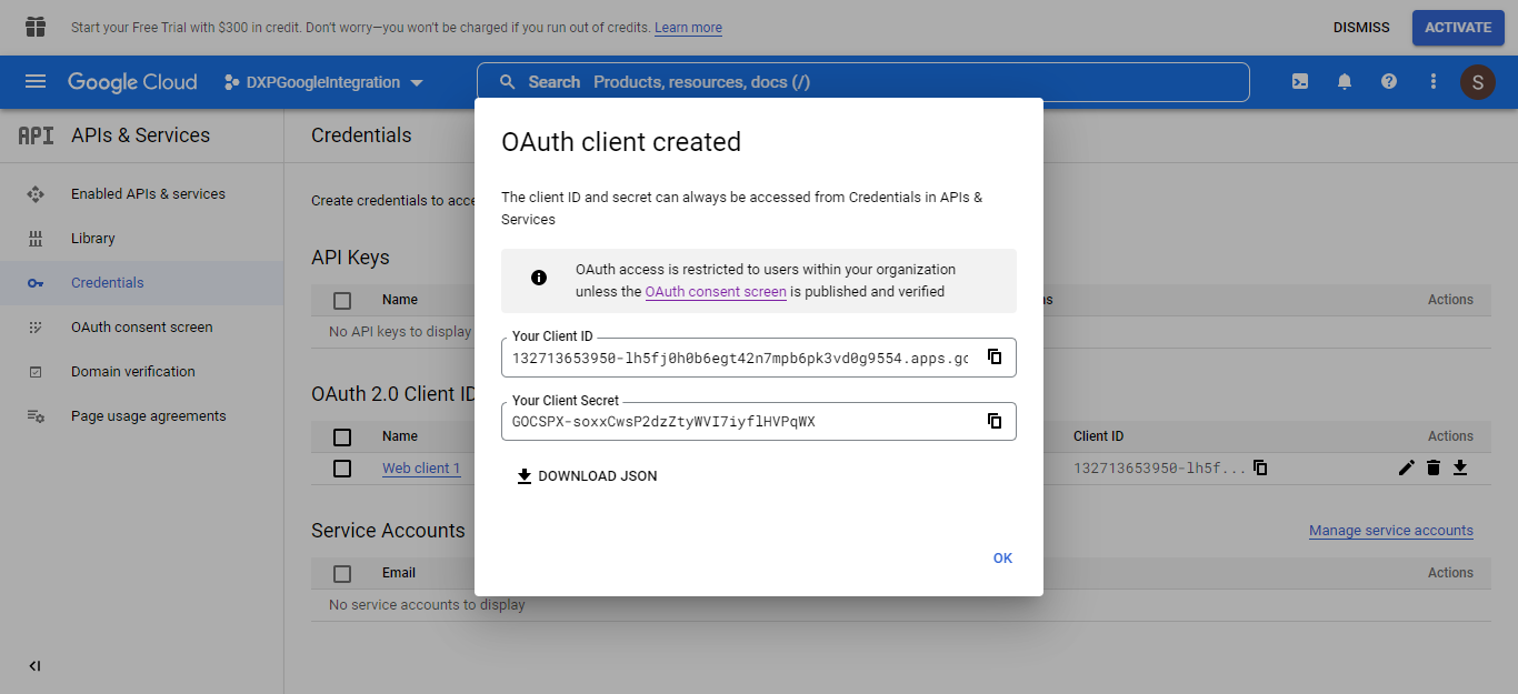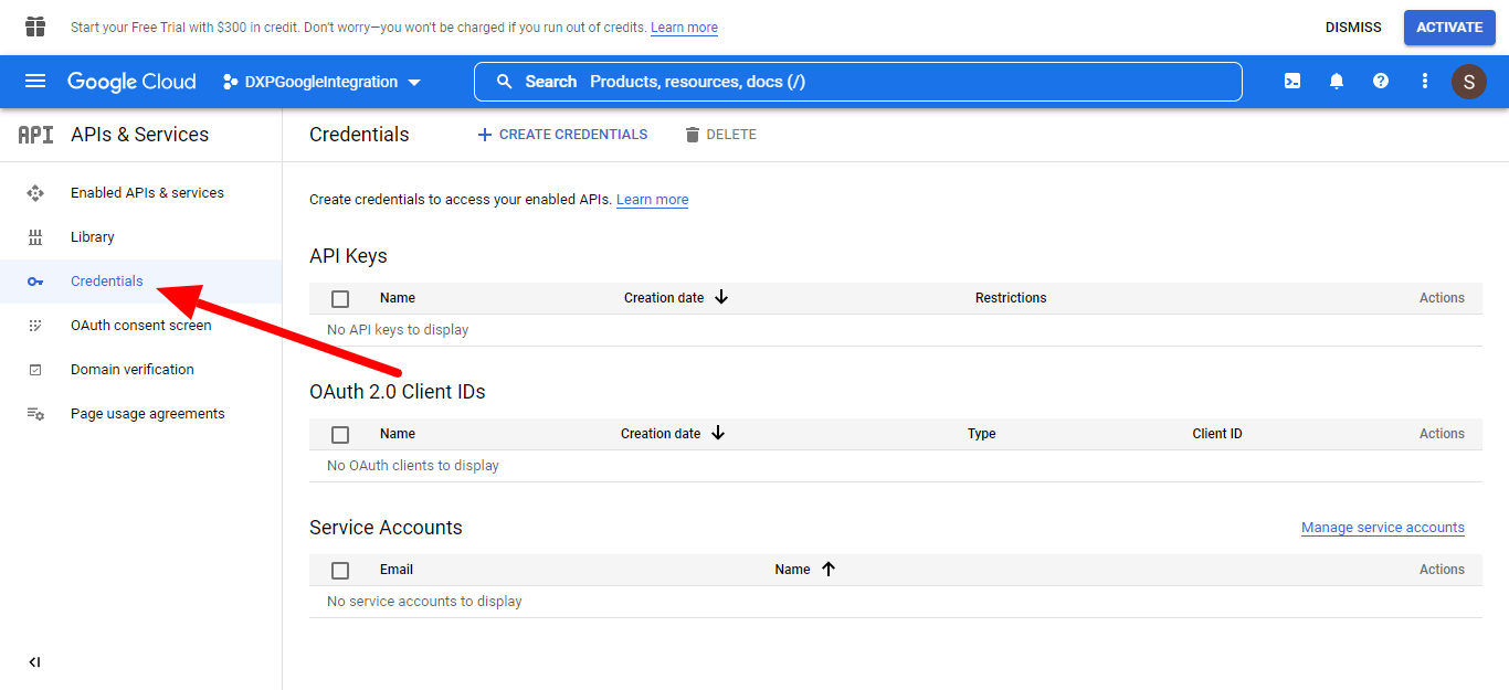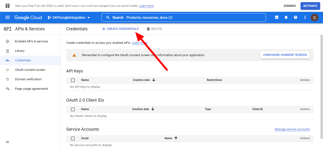 - On the Credentials page, click CREATE CREDENTIALS and select OAuth client