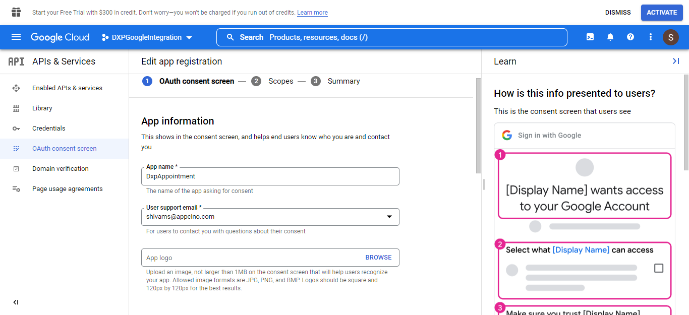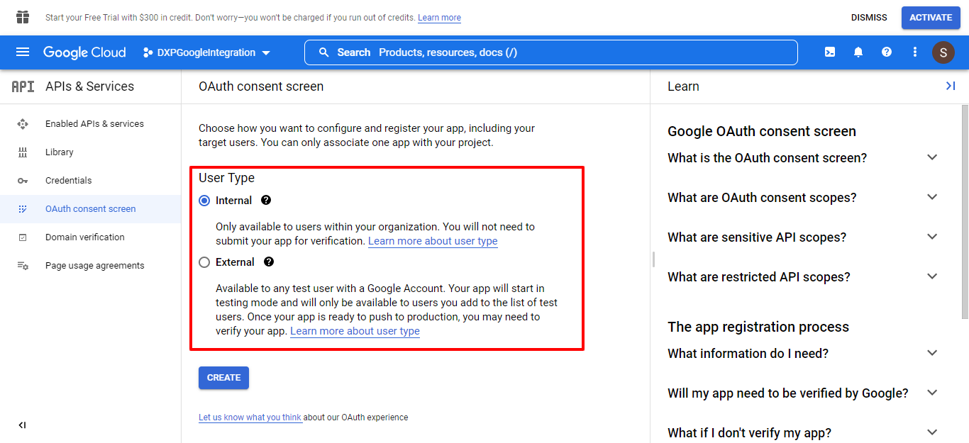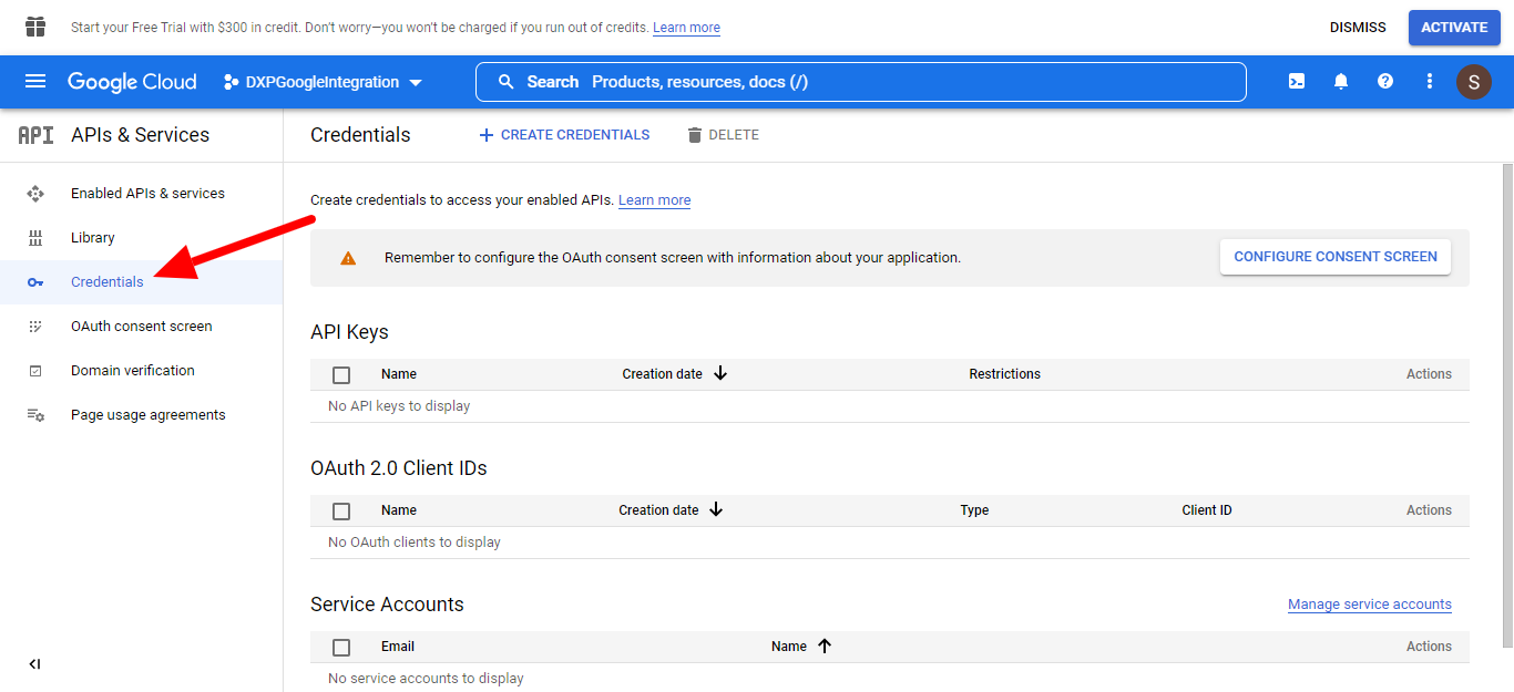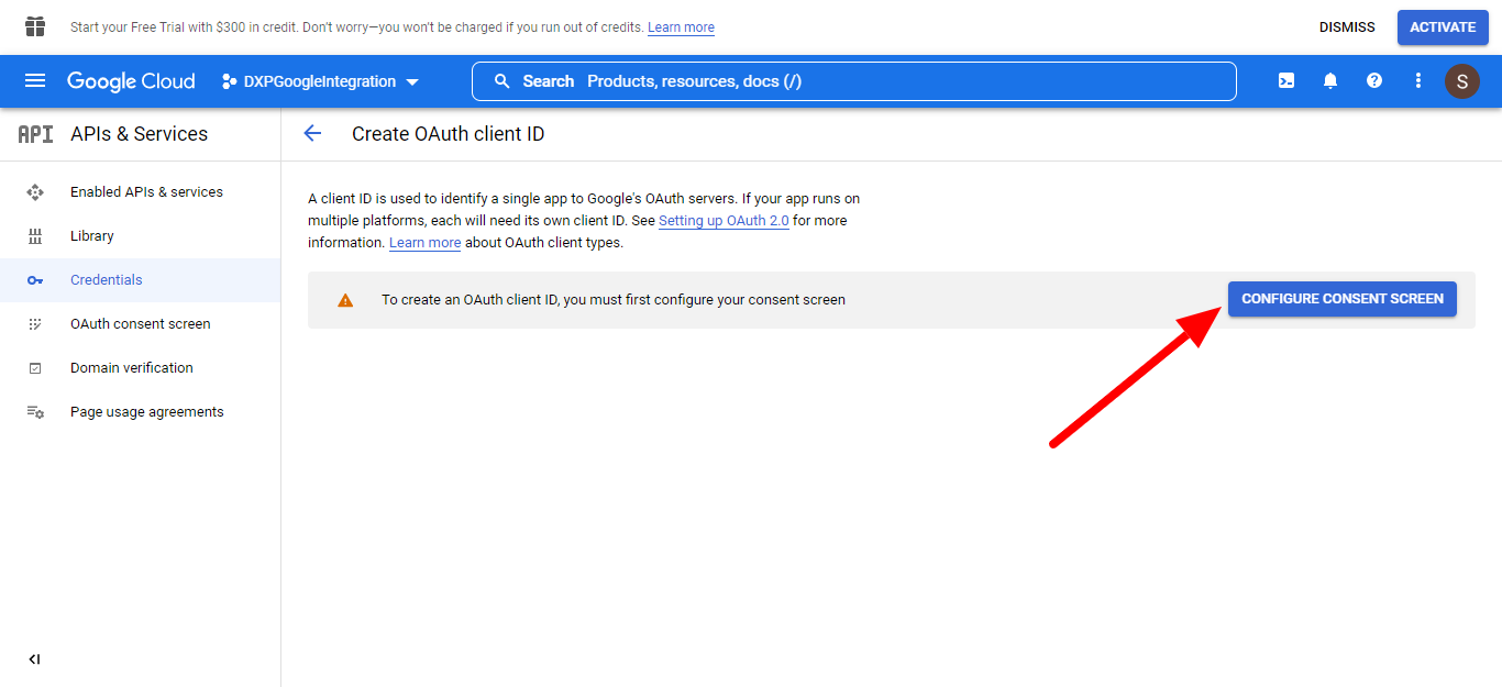 - On the Create OAuth client ID page, click on the CONFIGURE CONSENT