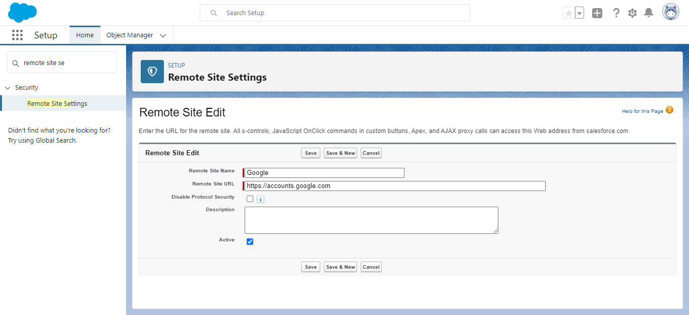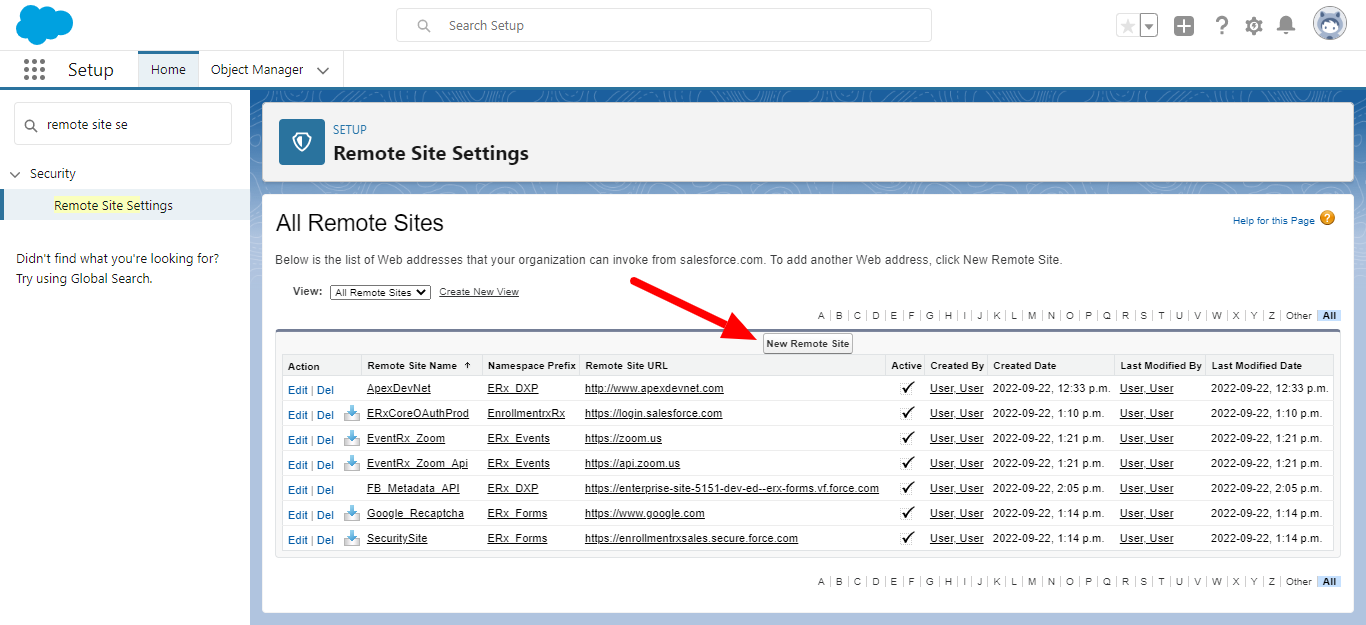 - Next, in the Quick Find box, search for "Remote Site Settings"