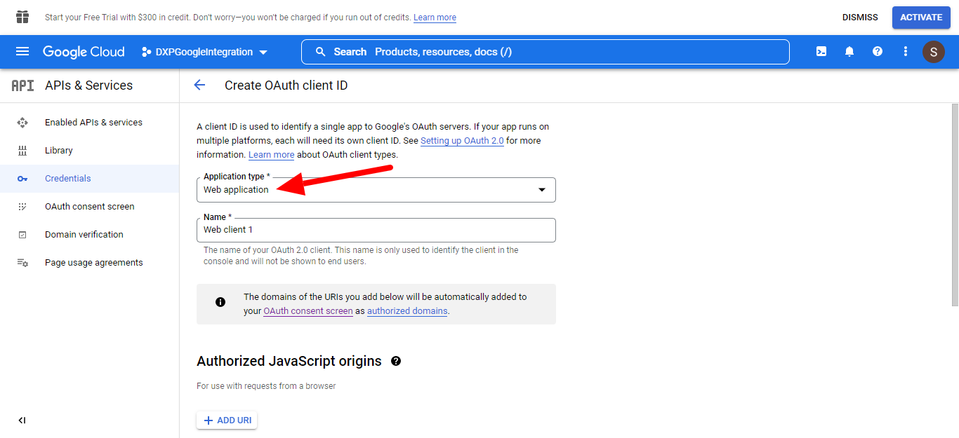 - On the Create OAuth client ID page, select "Web Application" as the application