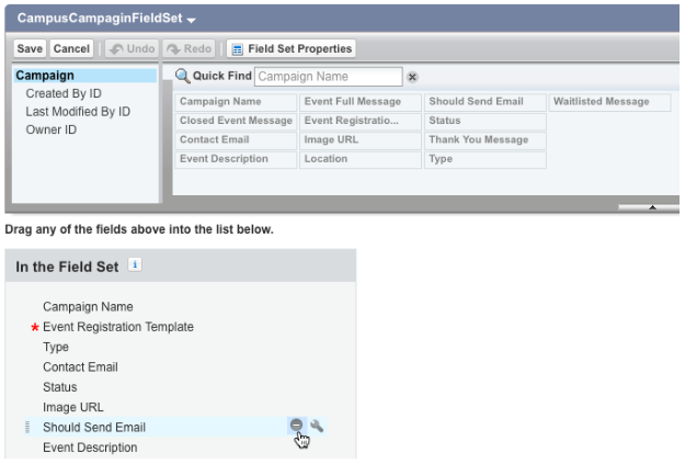 - Remove the checkbox called “Should Send Email” from the Campaign edit VisualForce page: