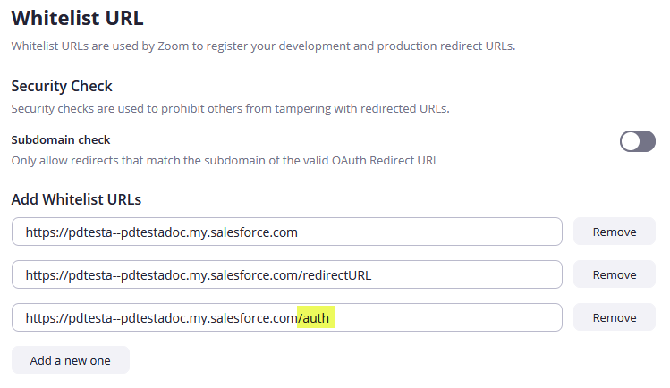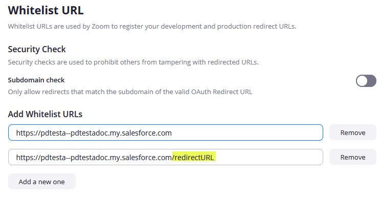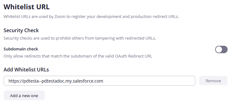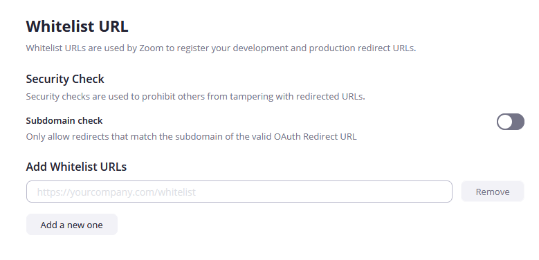 - Paste this portion of the URL into the first Whitelist field on the Zoom App