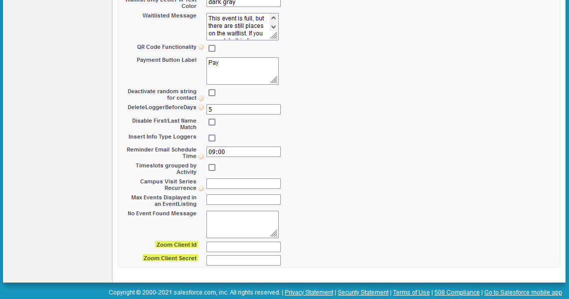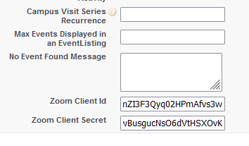 Zoom Client Id and Zoom Client Secret fields.