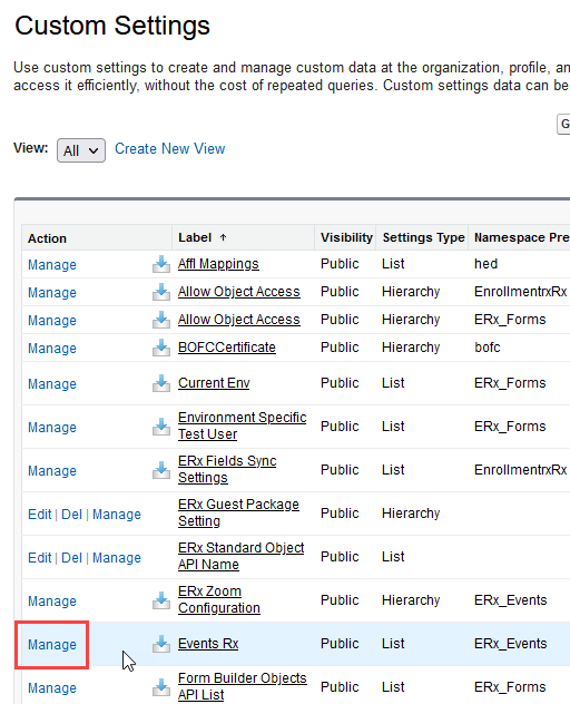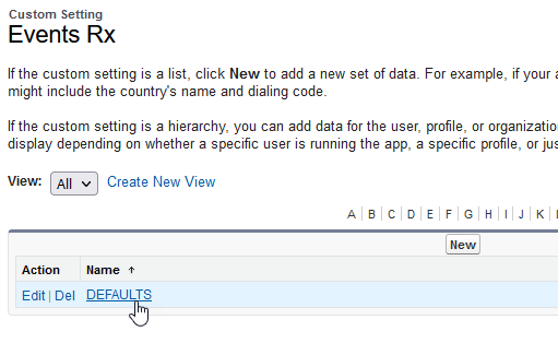 - On the Manage Custom Setting page, click DEFAULTS.