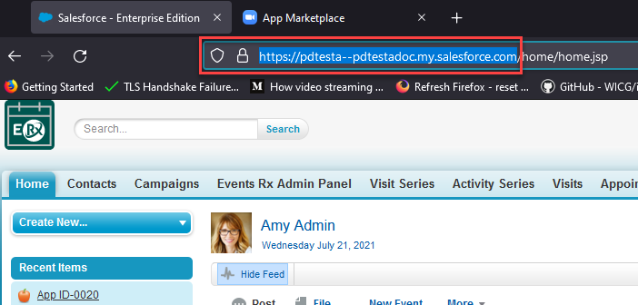 browser address bar, copy the URL up to and including salesforce.com.