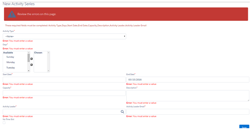 If you receive any of these errors, you must fill all the blank fields with the information for your activity series.