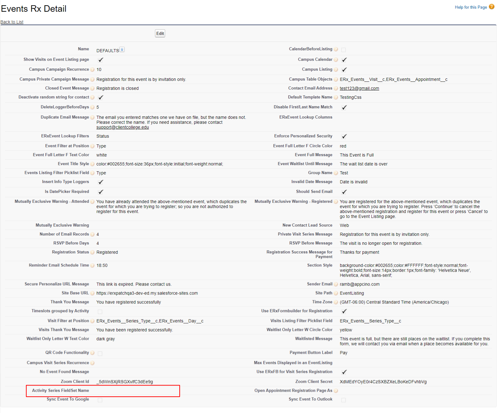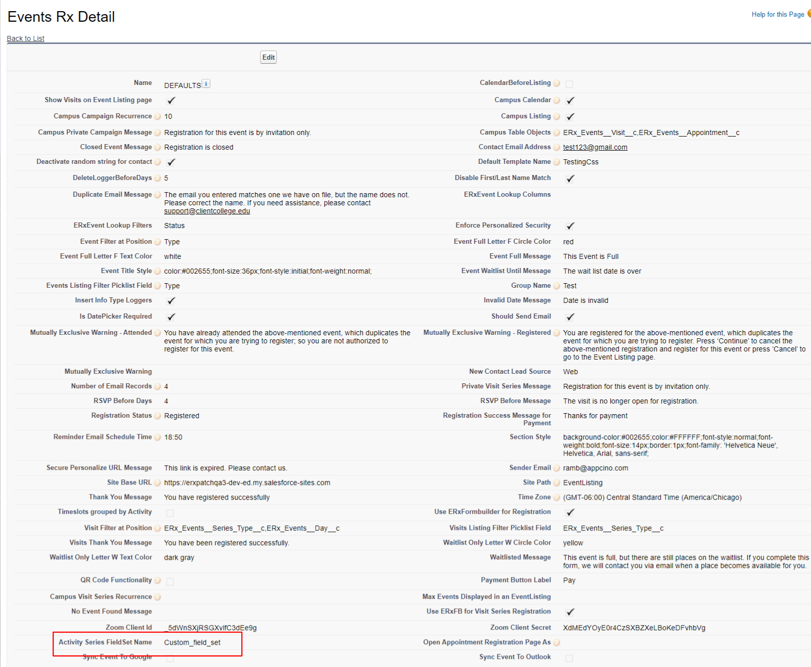 - Add the API name of that field set to the Event RX custom setting “Activity Series FieldSet Name” as a field value