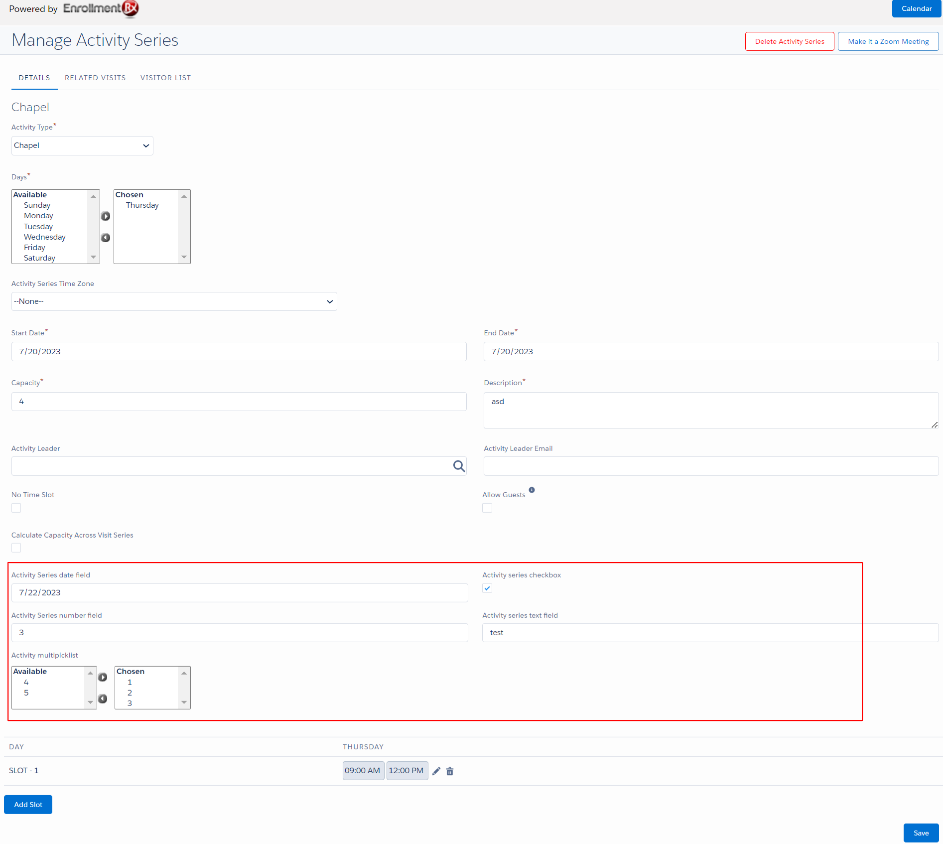 Activity Series Field set fields will be visible on the Activity Series configuration