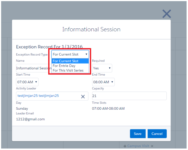 The “For Entire Day” option will create an exception record for all the visit series that is related to that activity series for the entire day.