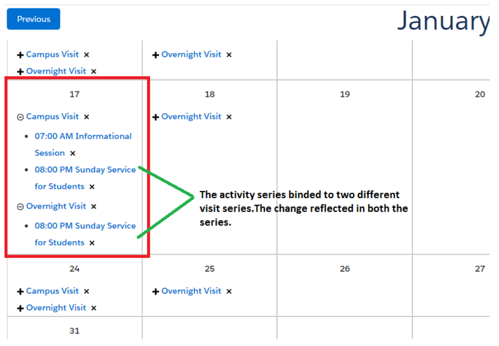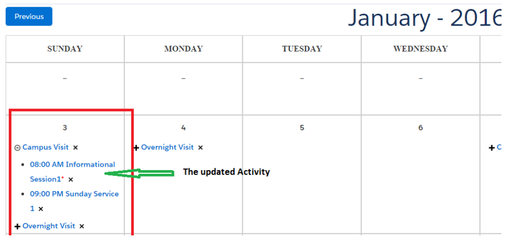 Now check on calendar that the change was made. The change will be reflected in the activity series binded to different visit series for that particular day.