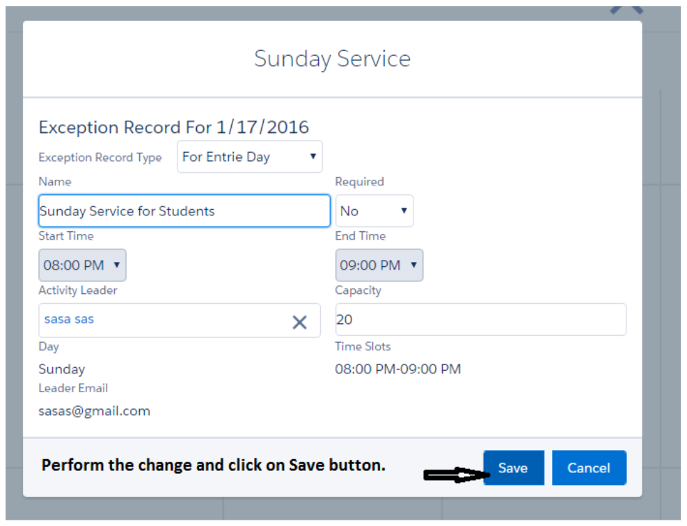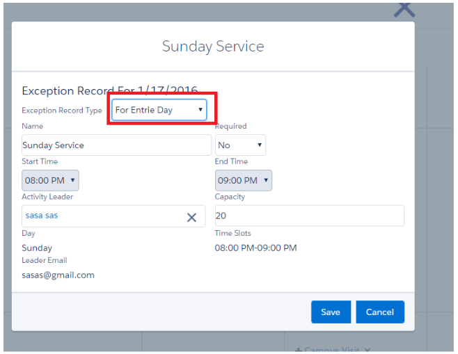 The Exception record created by Entire Day option can also be viewed from Activity Series record.