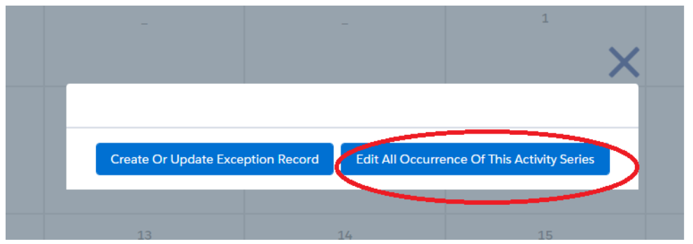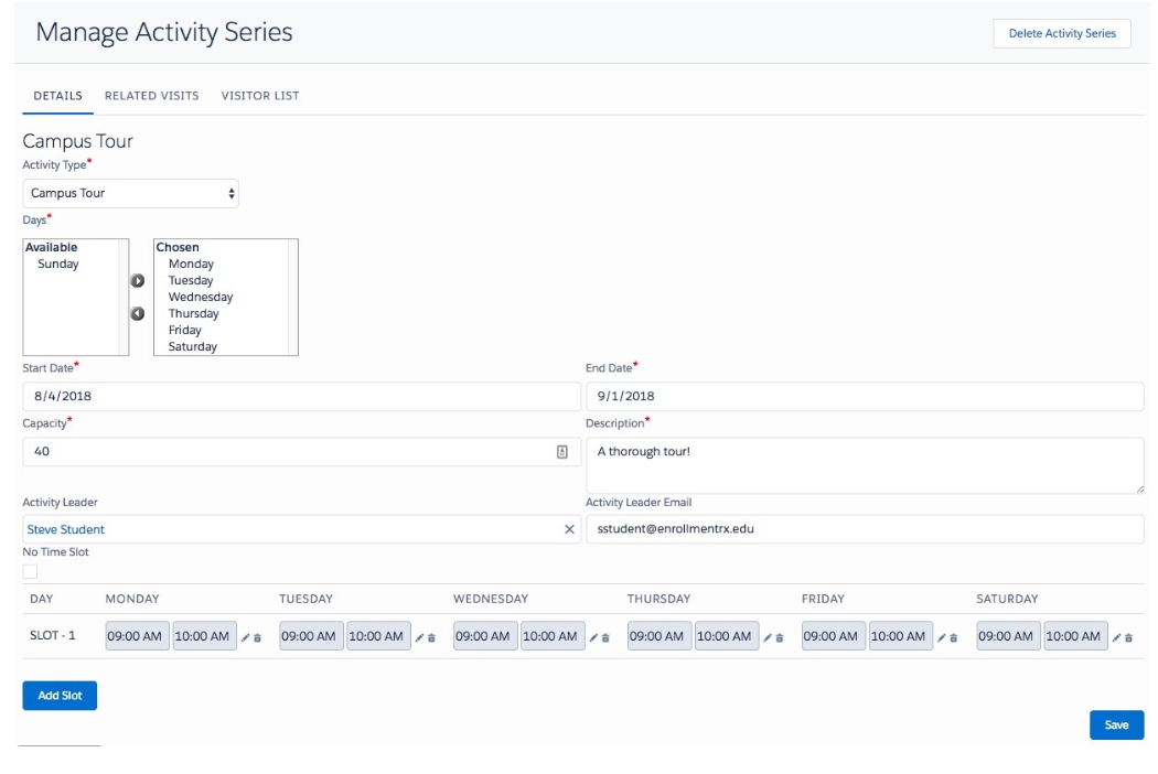 - You can edit in the record. The Admin can delete the activity series by clicking on the Delete Activity Series button.