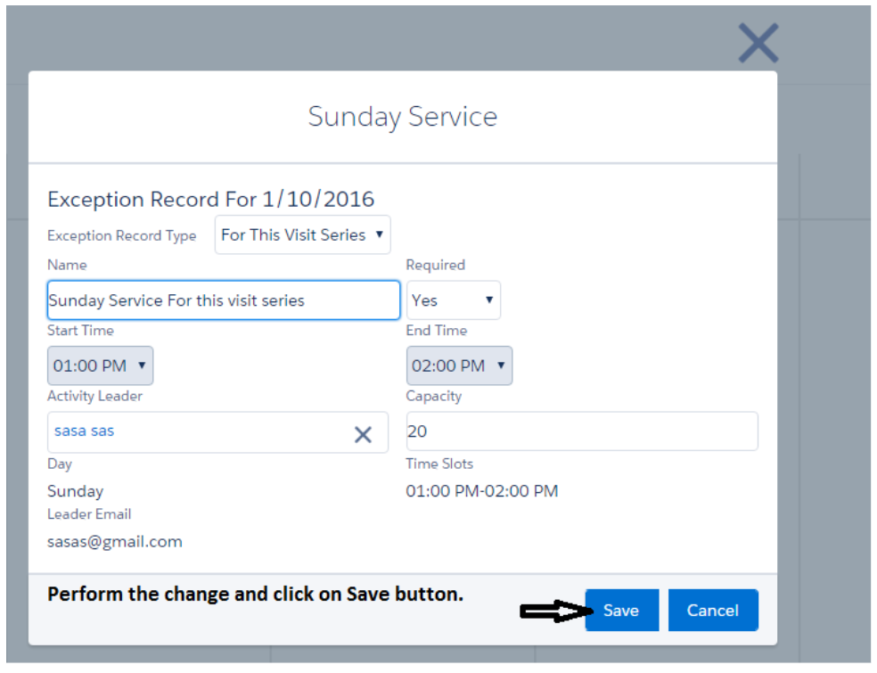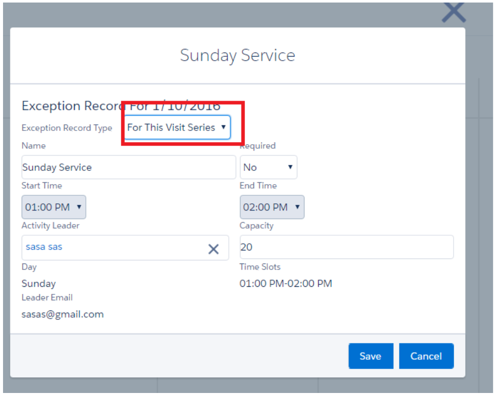 - Activity Leader: You can change the Activity Leader (choosing either a Contact record of a User record).