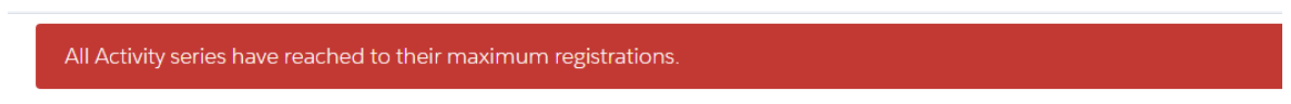 - If any Required activity reaches capacity the following message appears when user tries to register for that day.