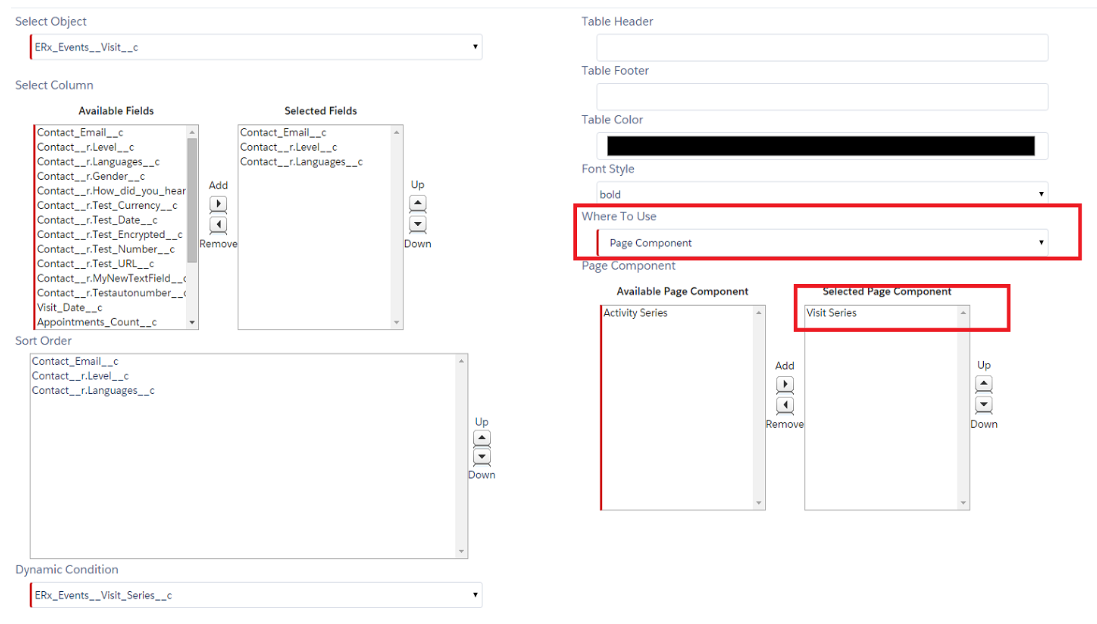 The table configuration can be defined for page components. When table configuration is defined for page components then tabular format can be viewed on page components.