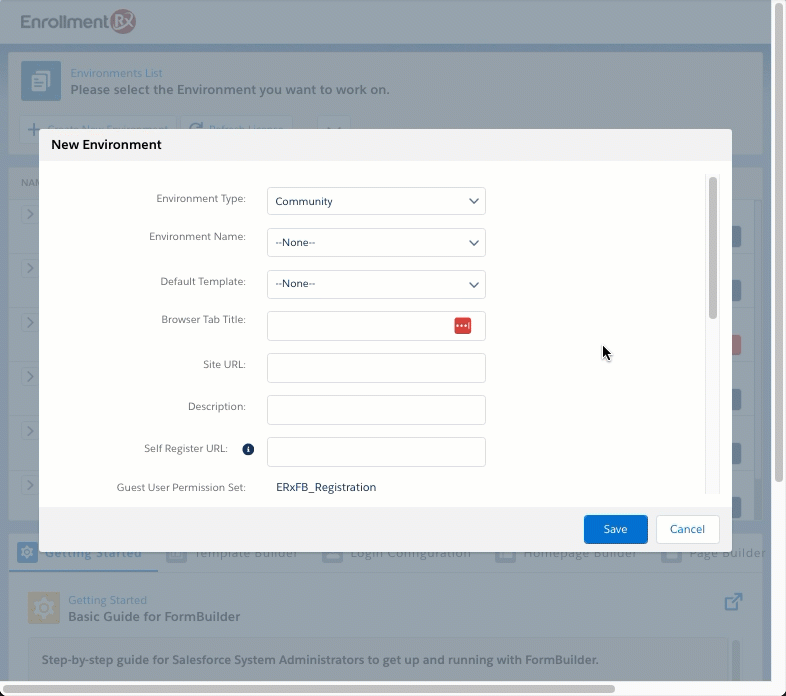| Environment Name | Select the Community or Site to which this new Environment will belong. |
