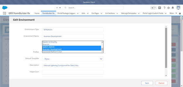 Go to . Choose SFPlatform as the environment type, and select the appropriate profile(s) (see screenshot below). Optionally, you can apply a template to style the form.